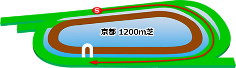 京都内回り1200mは直線が短く、スタート直後に登り坂があるため極端にペースが上がりにくいコース。その分、前で運べる内枠馬が有利という傾向にあります。